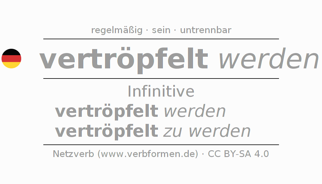 Das Verb vertröpfeln vollständig in allen Personen und Numeri im Infinitiv Präsens Perfekt konjugiert