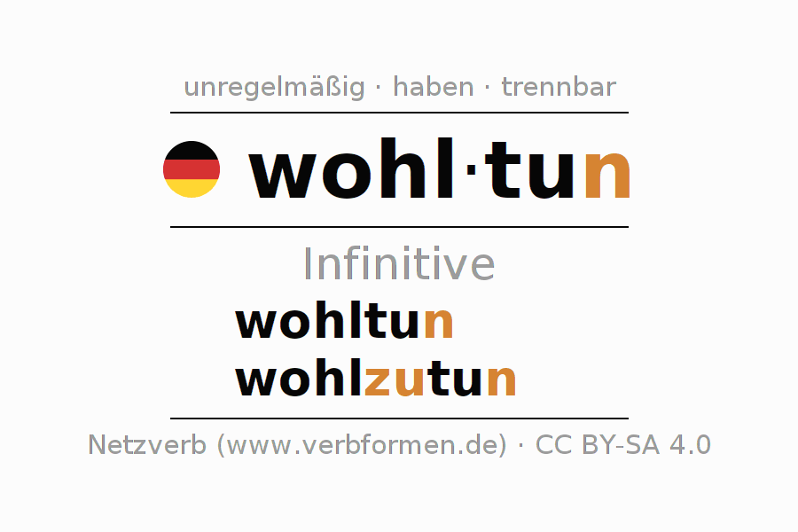 Das Verb wohltun vollständig in allen Personen und Numeri im Infinitiv Präsens Perfekt konjugiert
