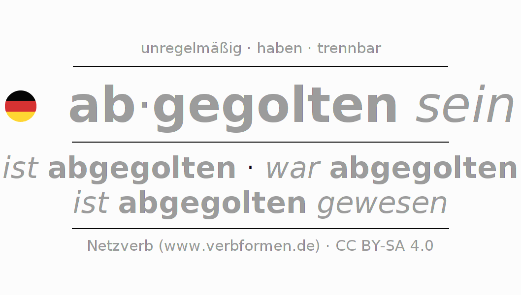 Das Verb abgelten vollständig in allen Personen und Numeri im Infinitiv Präsens Perfekt konjugiert