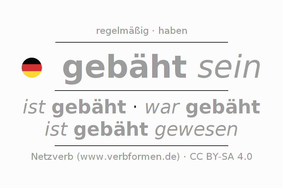 Die Konjugation von bähen im Infinitiv Präsens Perfekt Grundform Zustandspassiv ist: gebäht sein, gebäht zu sein.Die Bildung dieser Formen entspricht gewissen grammatischen Regeln. So auch die Vorgaben zur Konjugation der einfachen Verbformen von bähen im Infinitiv. Kommentare ☆