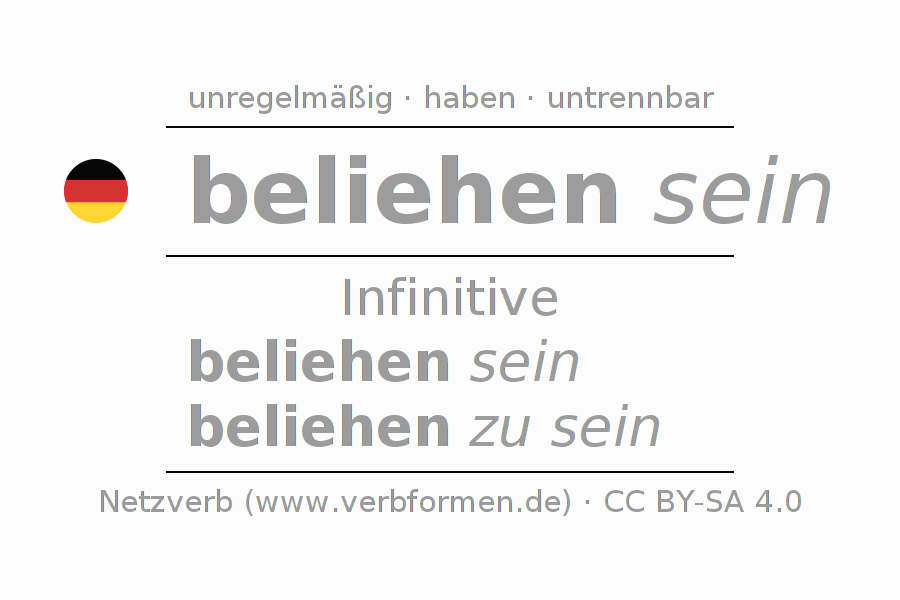 Die Konjugation von beleihen im Infinitiv Präsens Perfekt Grundform Zustandspassiv ist: belieh(e)n sein, belieh(e)n zu sein.Die Bildung dieser Formen entspricht gewissen grammatischen Regeln. So auch die Vorgaben zur Konjugation der einfachen Verbformen von beleihen im Infinitiv. Kommentare ☆
