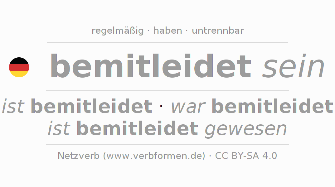 Das Verb bemitleiden vollständig in allen Personen und Numeri im Infinitiv Präsens Perfekt konjugiert