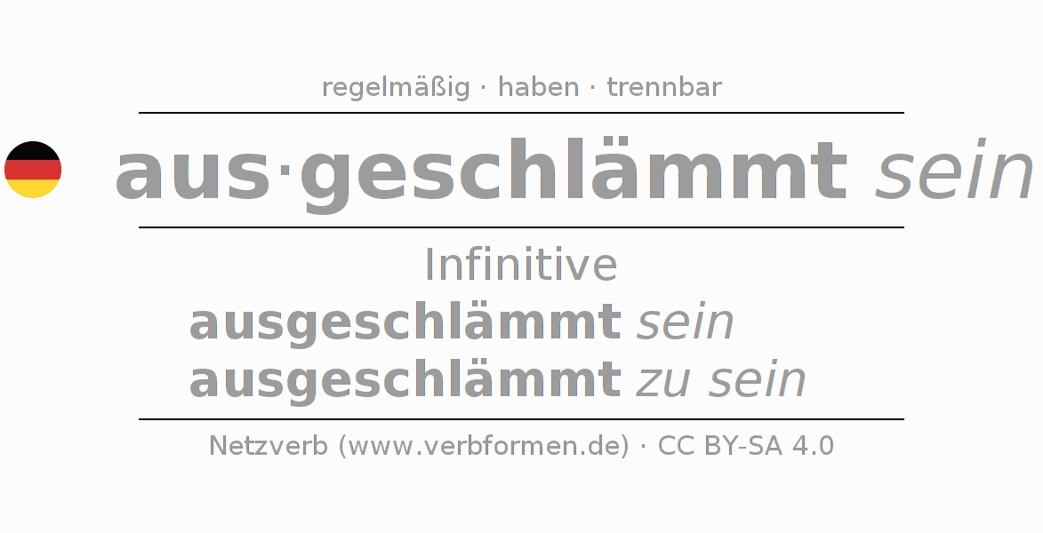 Das Verb ausschlämmen vollständig in allen Personen und Numeri im Infinitiv Präsens Perfekt konjugiert