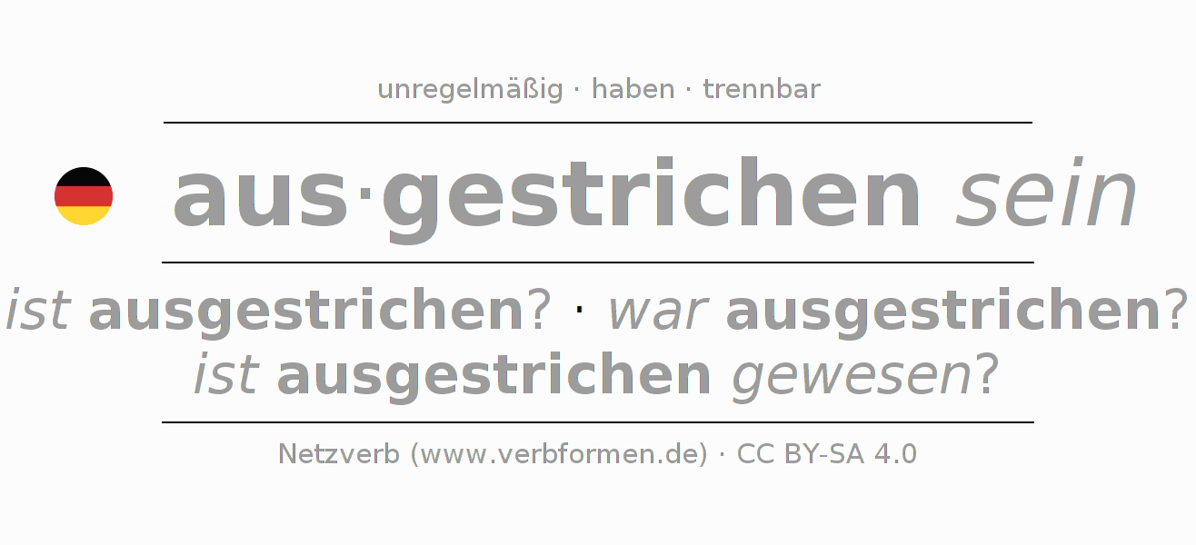 Das Verb ausstreichen vollständig in allen Personen und Numeri im Infinitiv Präsens Perfekt konjugiert