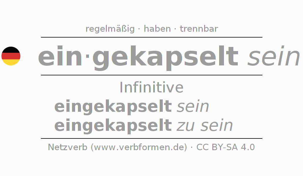 Das Verb einkapseln vollständig in allen Personen und Numeri im Infinitiv Präsens Perfekt konjugiert