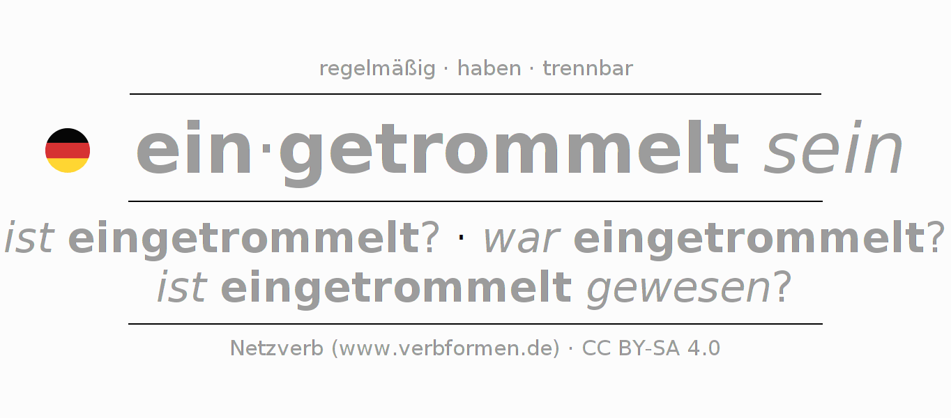 Das Verb eintrommeln vollständig in allen Personen und Numeri im Infinitiv Präsens Perfekt konjugiert