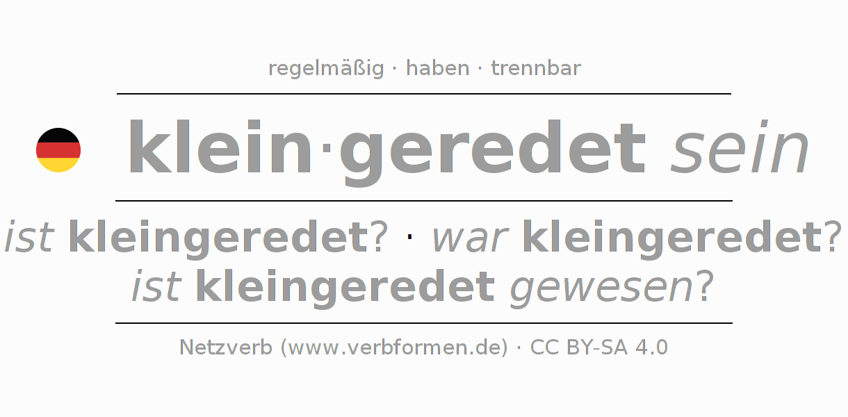 Das Verb kleinreden vollständig in allen Personen und Numeri im Infinitiv Präsens Perfekt konjugiert