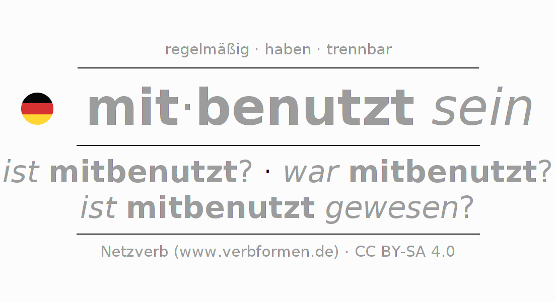 Das Verb mitbenutzen vollständig in allen Personen und Numeri im Infinitiv Präsens Perfekt konjugiert