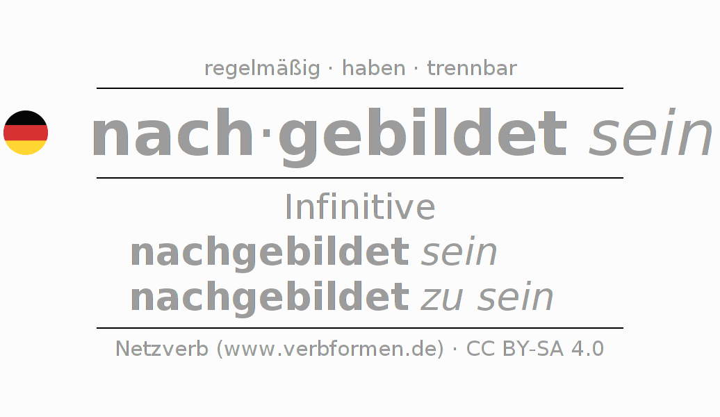 Das Verb nachbilden vollständig in allen Personen und Numeri im Infinitiv Präsens Perfekt konjugiert