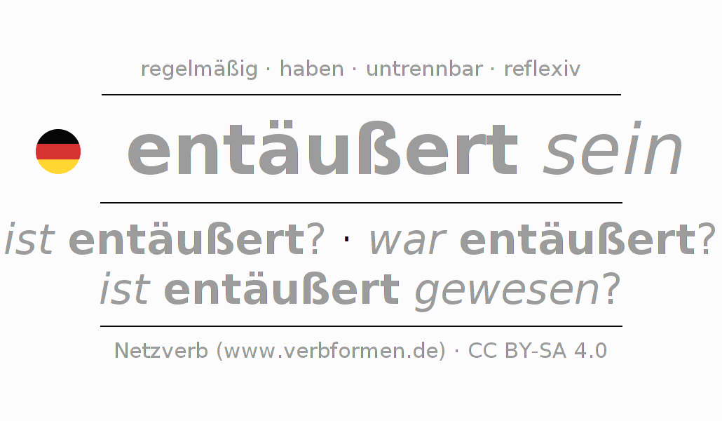 Das Verb sich entäußern vollständig in allen Personen und Numeri im Infinitiv Präsens Perfekt konjugiert