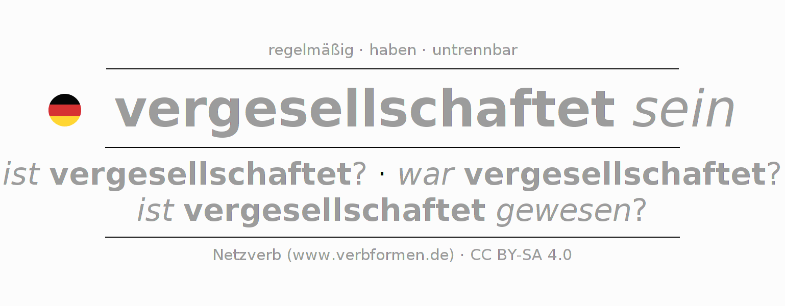 Das Verb vergesellschaften vollständig in allen Personen und Numeri im Infinitiv Präsens Perfekt konjugiert