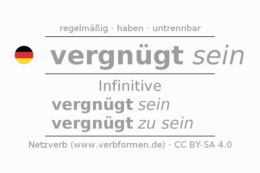 Das Verb vergnügen vollständig in allen Personen und Numeri im Infinitiv Präsens Perfekt konjugiert