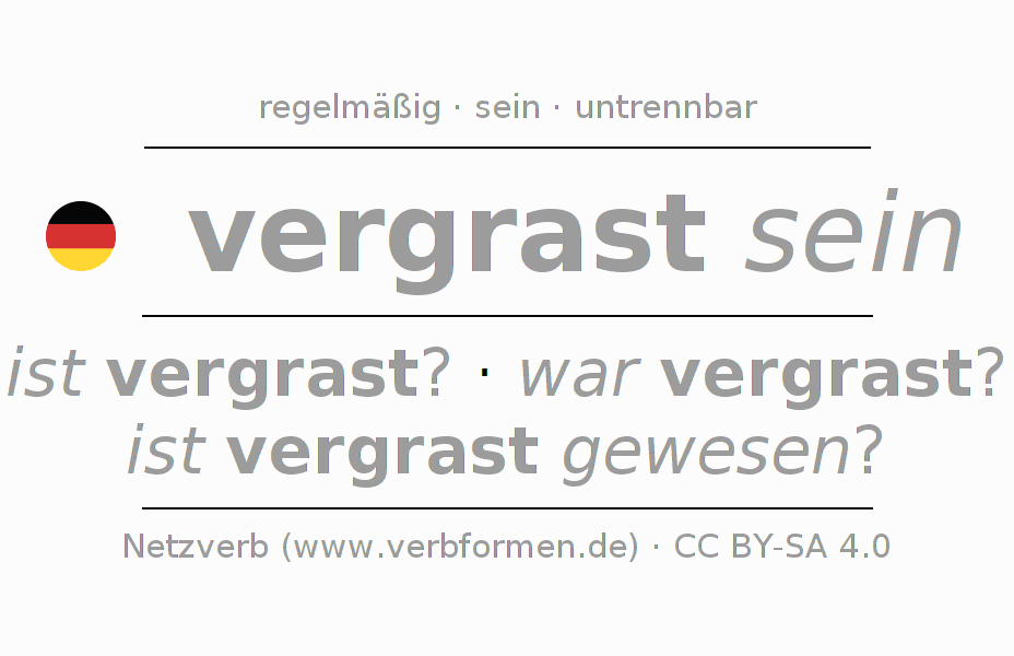 Das Verb vergrasen vollständig in allen Personen und Numeri im Infinitiv Präsens Perfekt konjugiert