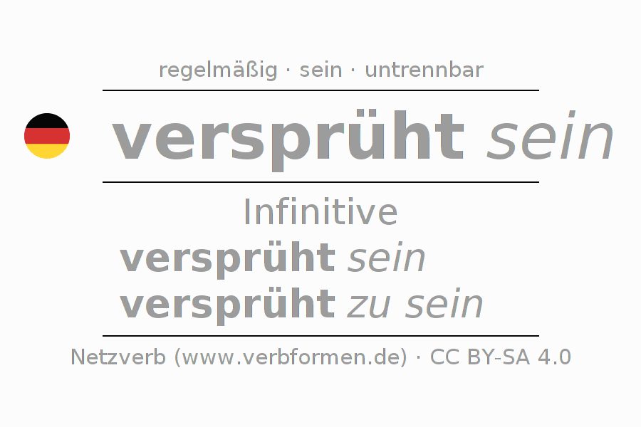 Das Verb versprühen (ist) vollständig in allen Personen und Numeri im Infinitiv Präsens Perfekt konjugiert