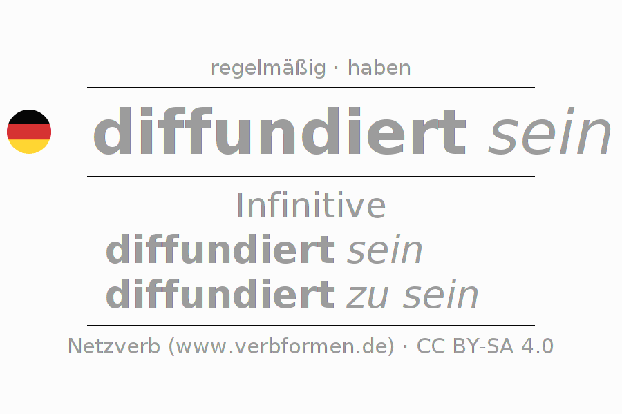 Das Verb diffundieren (hat) vollständig in allen Personen und Numeri im Infinitiv Präsens Perfekt konjugiert
