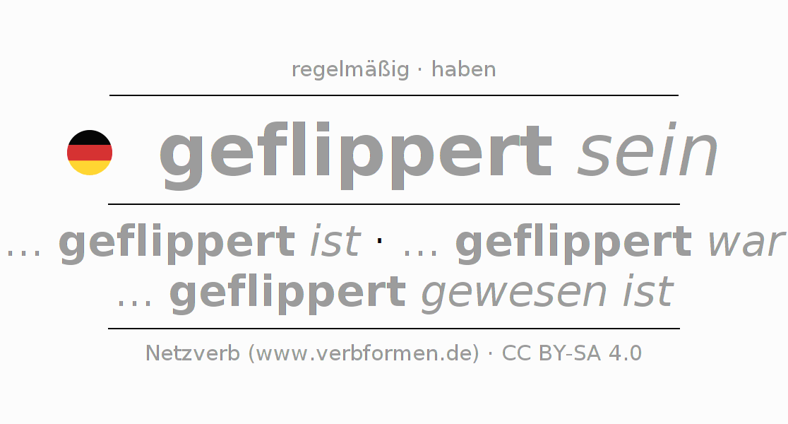 Das Verb flippern vollständig in allen Personen und Numeri im Infinitiv Präsens Perfekt konjugiert