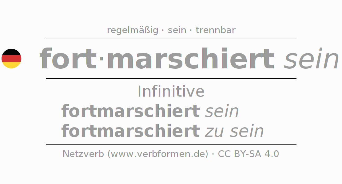 Das Verb fortmarschieren vollständig in allen Personen und Numeri im Infinitiv Präsens Perfekt konjugiert