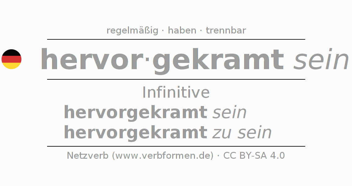 Das Verb hervorkramen vollständig in allen Personen und Numeri im Infinitiv Präsens Perfekt konjugiert