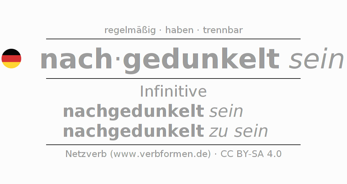 Das Verb nachdunkeln (hat) vollständig in allen Personen und Numeri im Infinitiv Präsens Perfekt konjugiert