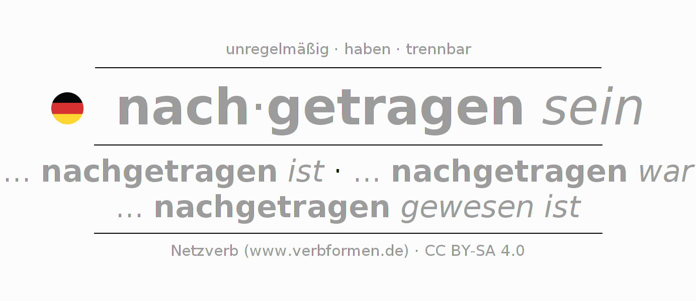 Das Verb nachtragen vollständig in allen Personen und Numeri im Infinitiv Präsens Perfekt konjugiert