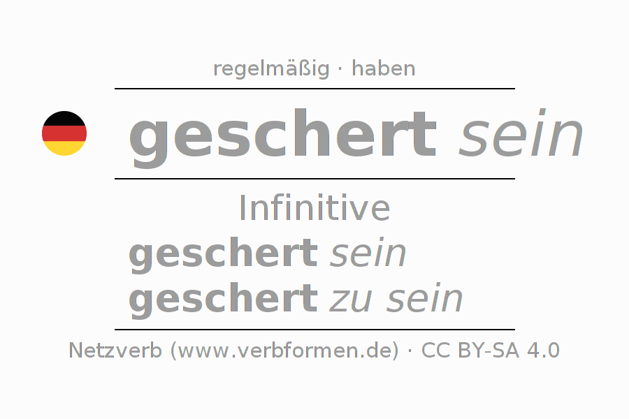 Die Konjugation von scheren im Infinitiv Präsens Perfekt Grundform Zustandspassiv ist: geschert sein, geschert zu sein.Die Bildung dieser Formen entspricht gewissen grammatischen Regeln. So auch die Vorgaben zur Konjugation der einfachen Verbformen von scheren im Infinitiv. 1Kommentar