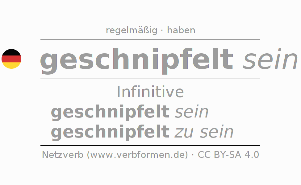 Das Verb schnipfeln vollständig in allen Personen und Numeri im Infinitiv Präsens Perfekt konjugiert