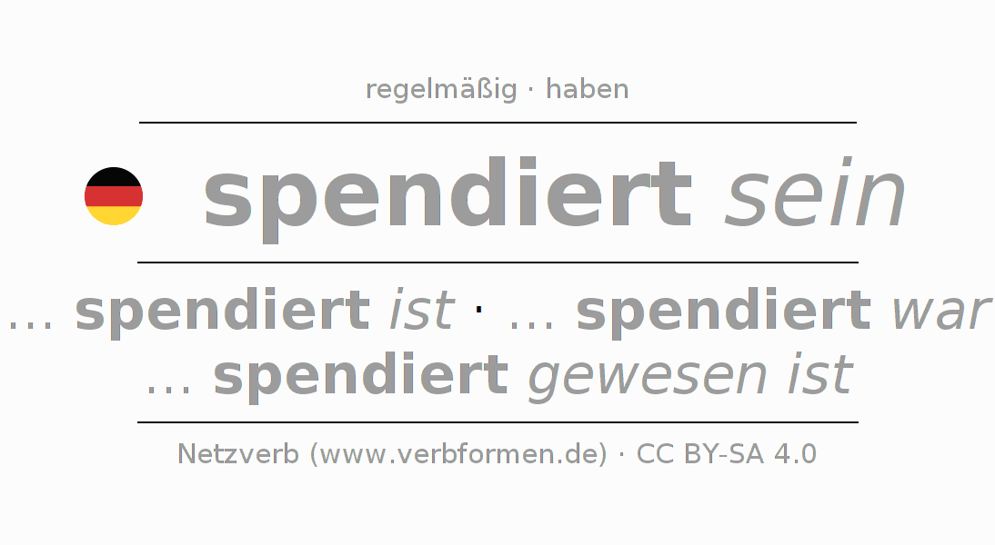 Das Verb spendieren vollständig in allen Personen und Numeri im Infinitiv Präsens Perfekt konjugiert