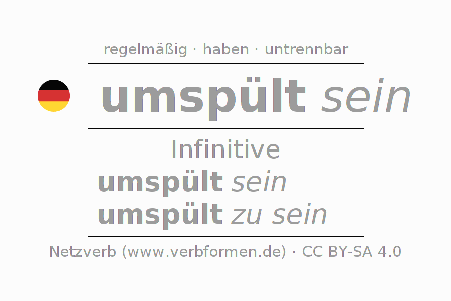 Das Verb umspülen vollständig in allen Personen und Numeri im Infinitiv Präsens Perfekt konjugiert