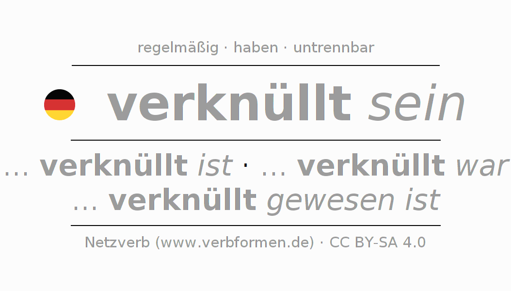 Das Verb verknüllen vollständig in allen Personen und Numeri im Infinitiv Präsens Perfekt konjugiert
