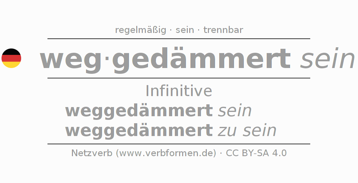 Das Verb wegdämmern vollständig in allen Personen und Numeri im Infinitiv Präsens Perfekt konjugiert