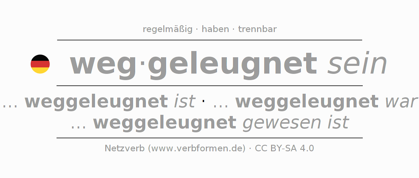 Das Verb wegleugnen vollständig in allen Personen und Numeri im Infinitiv Präsens Perfekt konjugiert