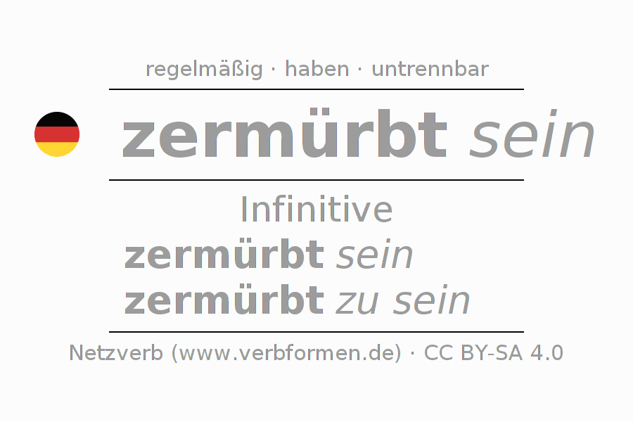 Das Verb zermürben vollständig in allen Personen und Numeri im Infinitiv Präsens Perfekt konjugiert