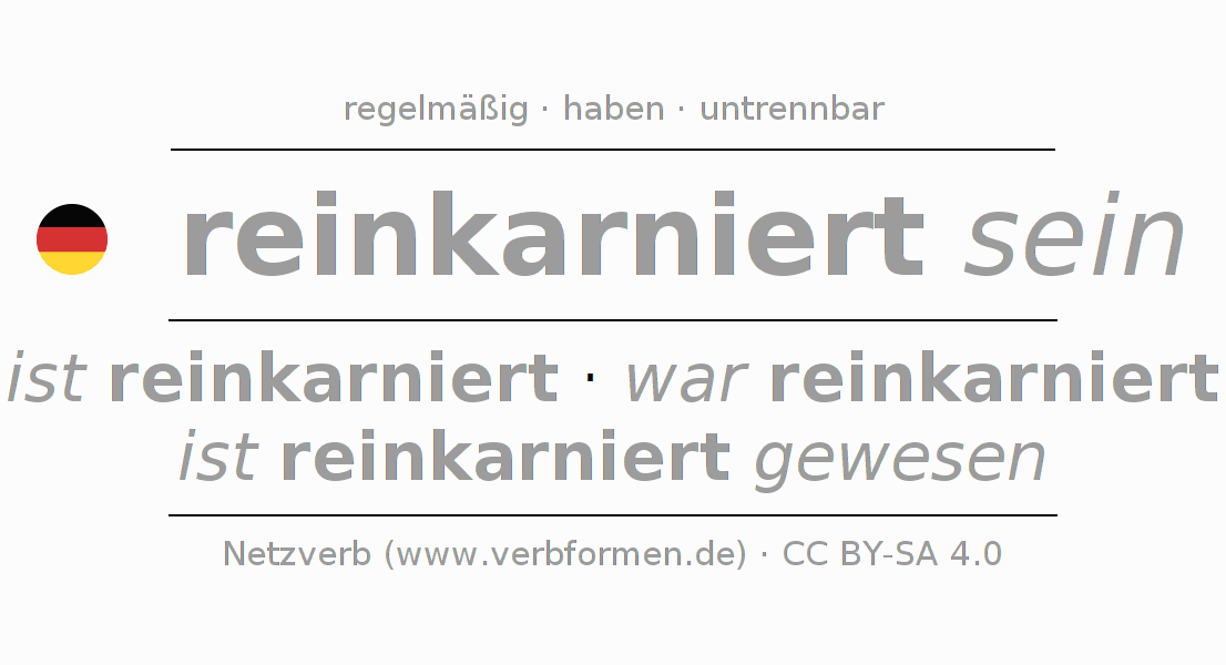 Das Verb reinkarnieren vollständig in allen Personen und Numeri im Infinitiv Präsens Perfekt konjugiert