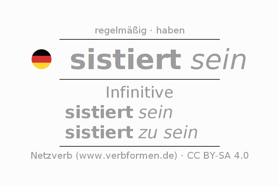 Das Verb sistieren vollständig in allen Personen und Numeri im Infinitiv Präsens Perfekt konjugiert