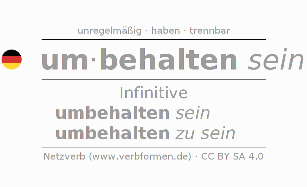 Das Verb umbehalten vollständig in allen Personen und Numeri im Infinitiv Präsens Perfekt konjugiert