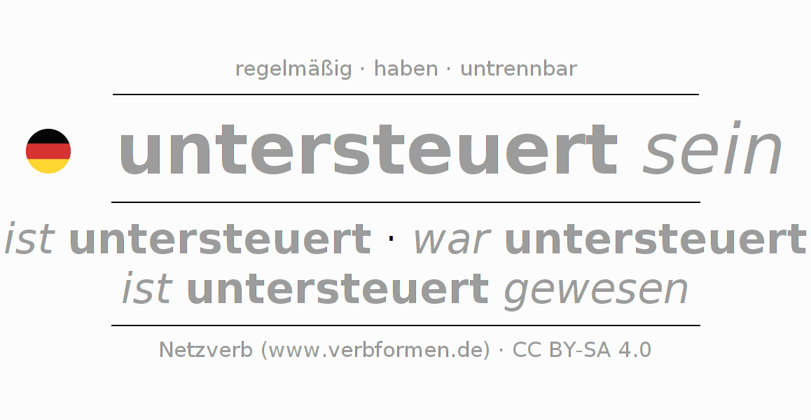 Die Konjugation von untersteuern im Infinitiv Präsens Perfekt Grundform Zustandspassiv ist: untersteuert sein, untersteuert zu sein.Die Bildung dieser Formen entspricht gewissen grammatischen Regeln. So auch die Vorgaben zur Konjugation der einfachen Verbformen von untersteuern im Infinitiv. Kommentare ☆
