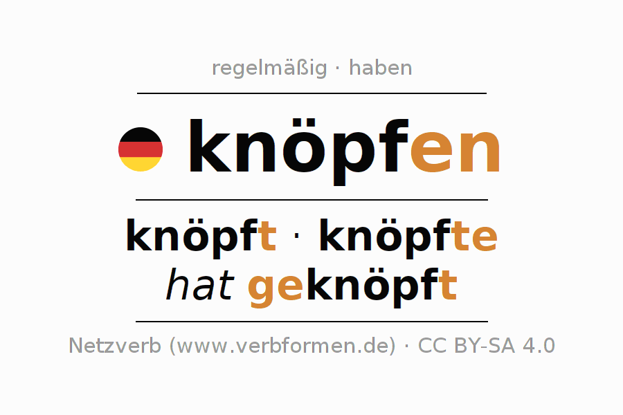 - Perfekt: ich habe geknöpft, du hast geknöpft, er hat geknöpft, wir haben geknöpft, ihr habt geknöpft, sie haben geknöpft