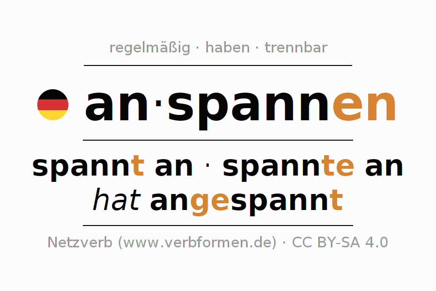 - ich spanne an (1. PersonSingular)