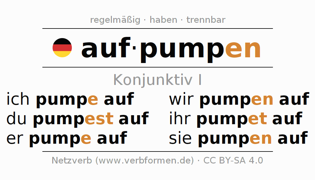 Das Verb aufpumpen vollständig in allen Personen und Numeri im Konjunktiv Präsens konjugiert
