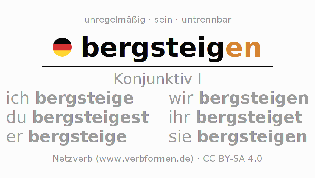 Das Verb bergsteigen (ist) vollständig in allen Personen und Numeri im Konjunktiv Präsens konjugiert