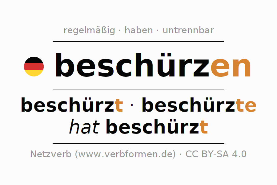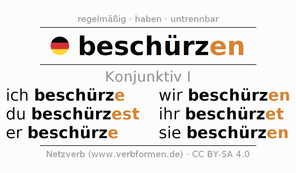 Das Verb beschürzen vollständig in allen Personen und Numeri im Konjunktiv Präsens konjugiert