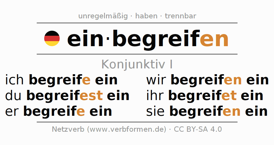 Das Verb einbegreifen vollständig in allen Personen und Numeri im Konjunktiv Präsens konjugiert