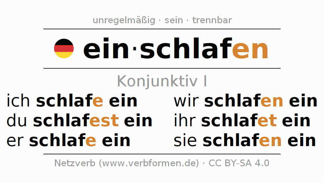 Das Verb einschlafen vollständig in allen Personen und Numeri im Konjunktiv Präsens konjugiert