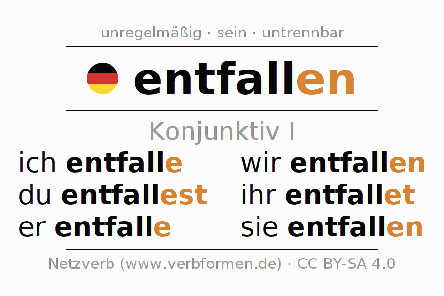 Das Verb entfallen vollständig in allen Personen und Numeri im Konjunktiv Präsens konjugiert