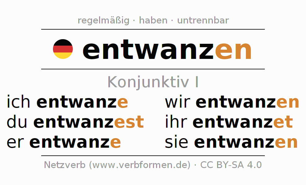Das Verb entwanzen vollständig in allen Personen und Numeri im Konjunktiv Präsens konjugiert