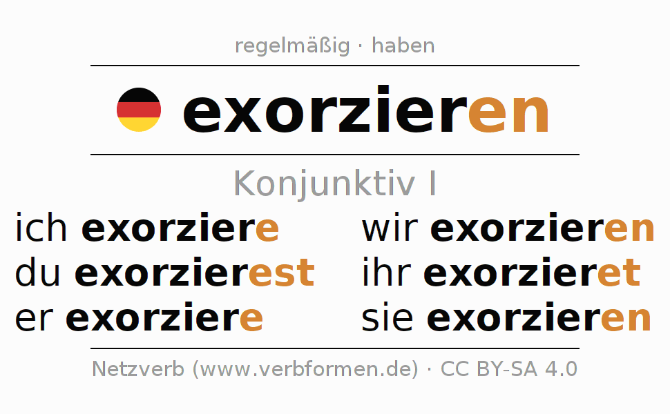 Das Verb exorzieren vollständig in allen Personen und Numeri im Konjunktiv Präsens konjugiert