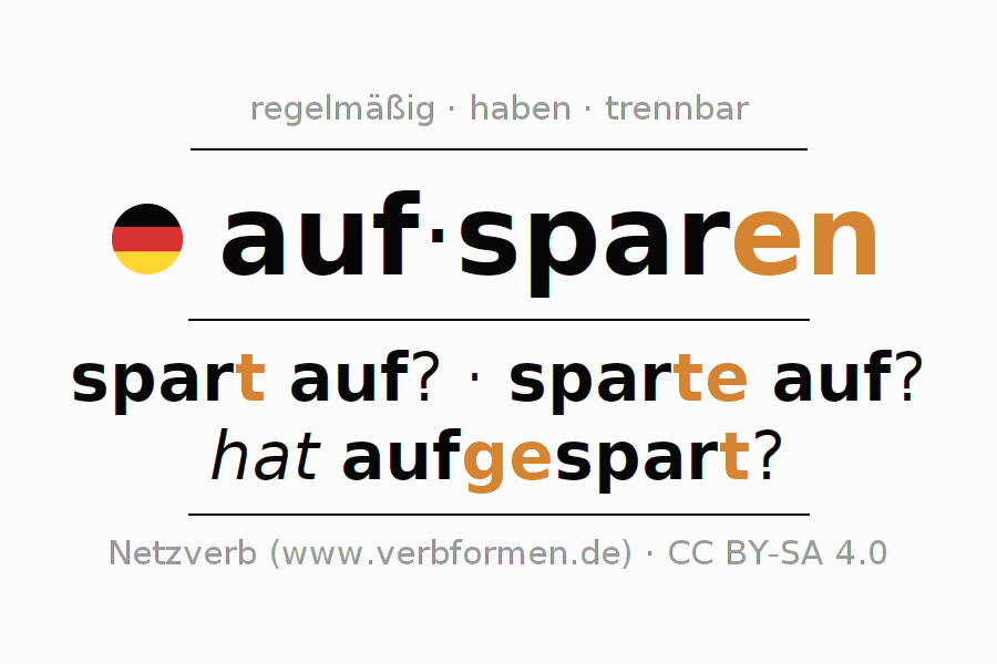 Die Konjugation von aufsparen im Konjunktiv Präsens Möglichkeitsform Aktiv ist: spare ich auf?, sparest du auf?, spare er auf?, sparen wir auf?, sparet ihr auf?, sparen sie auf?.Die Bildung dieser Formen entspricht gewissen grammatischen Regeln. So auch die Vorgaben zur Konjugation der einfachen Verbformen von aufsparen im Konjunktiv I. Kommentare ☆