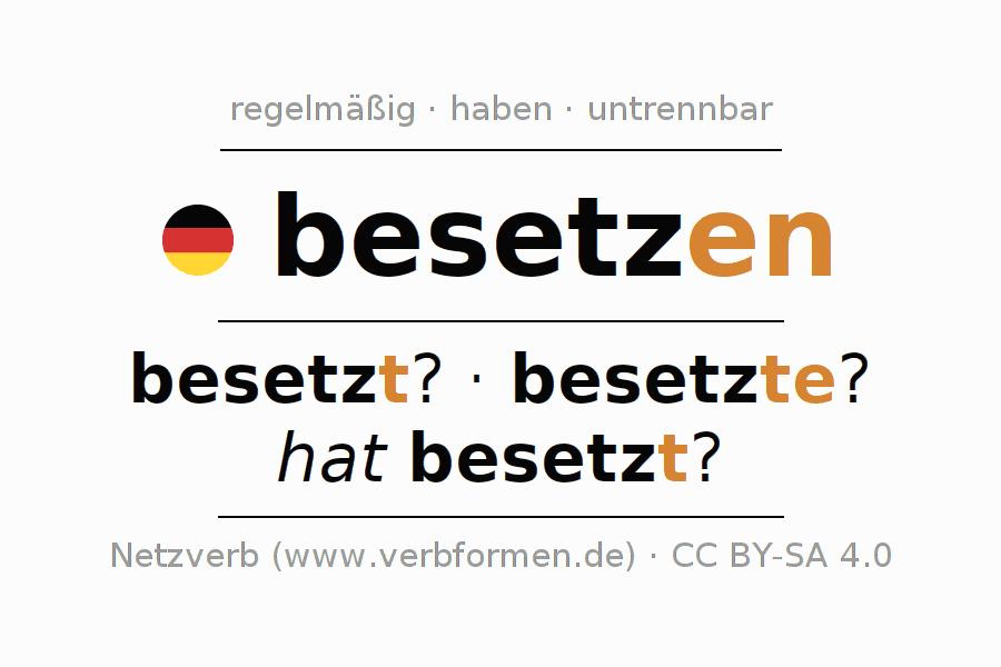 Die Konjugation von besetzen im Konjunktiv Präsens Möglichkeitsform Aktiv ist: besetze ich?, besetzest du?, besetze er?, besetzen wir?, besetzet ihr?, besetzen sie?.Die Bildung dieser Formen entspricht gewissen grammatischen Regeln. So auch die Vorgaben zur Konjugation der einfachen Verbformen von besetzen im Konjunktiv I. Kommentare ☆