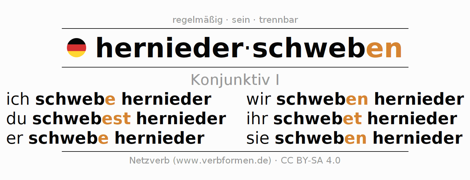 Das Verb herniederschweben vollständig in allen Personen und Numeri im Konjunktiv Präsens konjugiert