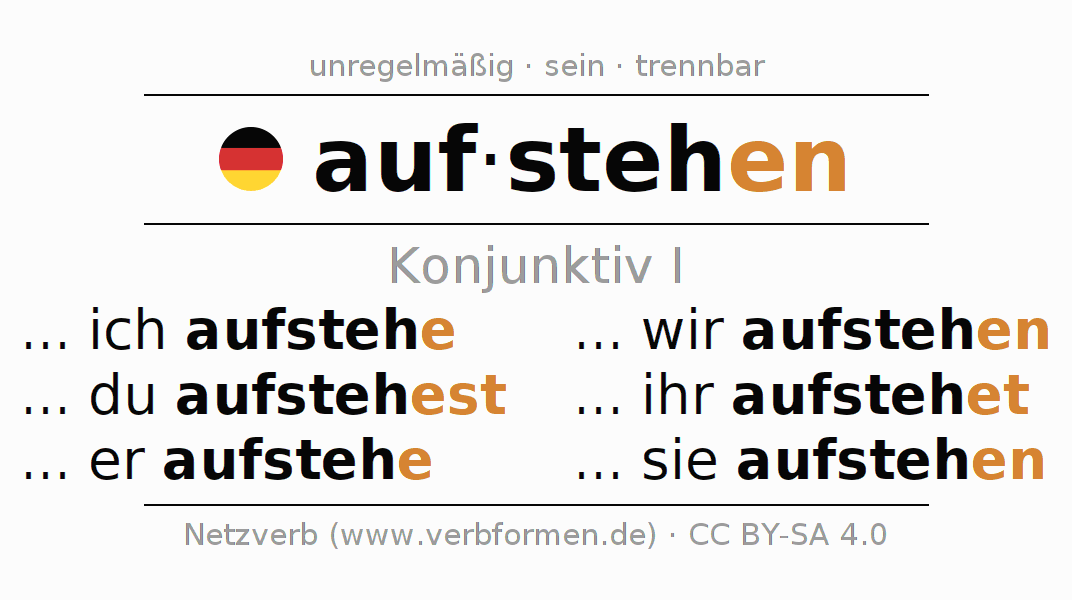 Das Verb aufstehen (ist) vollständig in allen Personen und Numeri im Konjunktiv Präsens konjugiert